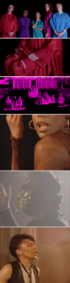 Im Wiederholen und Parallelschalten fließen die einzelnen Performances gelegentlich ineinander und überwinden die Grenzen der sie voneinander trennenden Bildebenen, bis sich Idunnu Münch, Mandhla Ndubiwa und Queer Falafel schließlich begegnen und Passagen der jeweils anderen Songs vortragen. In dieser Annäherung treffen die in den Musikgenres festgeschriebenen Narrative aufeinander und es entsteht ein komplexer Dialog zwischen kulturellen, ethnischen und Gender-Narrativen.