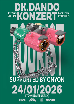 Freut euch auf einen Abend voller Energie, frischen Sounds und herzzerreißender Gastauftritte. Dk.dandoDas Duo aus Leipzig steht für einen Sound, der sich schwer in Schubladen stecken lässt – irgendwo zwischen düsterem LoFi, introspektivem Rap und eingängigen Hooks. Ihre Musik lebt von Kontrasten: raue Texturen treffen auf klare Melodien, drückende Beats auf intime Atmosphäre. Ihre Musik trägt eine melancholische Grundstimmung, ohne sich im Pathos zu verlieren. Stattdessen entsteht ein ehrlicher, roher Klang, der unter die Haut geht. Dk.dando erzählen keine lauten Geschichten, sie lassen Räume entstehen, in denen man verweilen möchte.