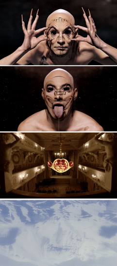 Die angestaubte architektonische Opulenz, die aus der Zeit gefallenen antikisierenden Ornamente und der akustische Widerhall eines alten Theaterbaus bilden in Binha Haases 3-Kanal-Installation das räumliche Setting, in dem drei Performer:innen in Erscheinung treten. Die Opernsängerin Idunnu Münch und die beiden Drag-Artists Mandhla Ndubiwa und Queer Falafel singen in den ihnen eigenen Genres von queerem Begehren, unerfüllten Leidenschaften und abweichenden Identitäten. An einer Stelle heißt es auf arabisch: "You don't know that my faggotry comes with atoning rage."